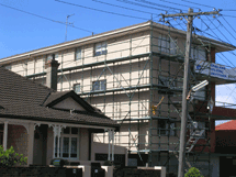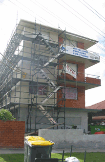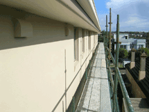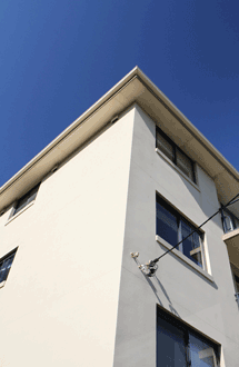 The existing brickwork was suffering salt etching and erosion so the facades were high pressure water blasted and defective bricks replaced. A polymer modified cement render system (Quickwall) was then applied to the existing brickwork followed by a three coat system using Dulux Elastomeric facade membrane coating.